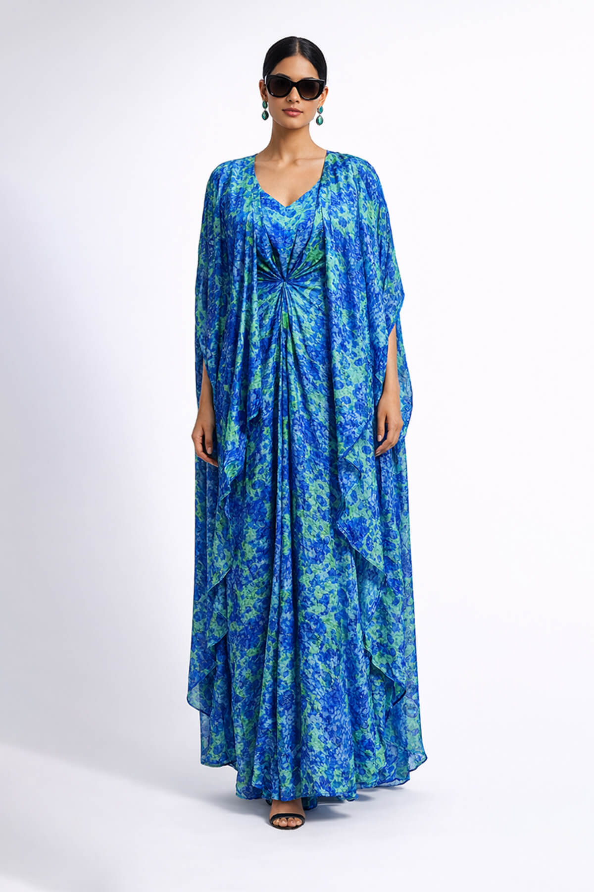 "A long printed chiffon dress. Most of these images are AI generated, so there can be a slight difference. "