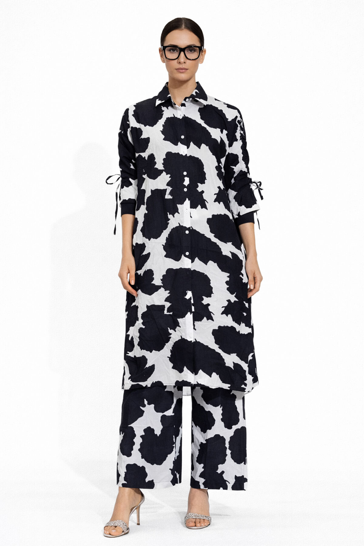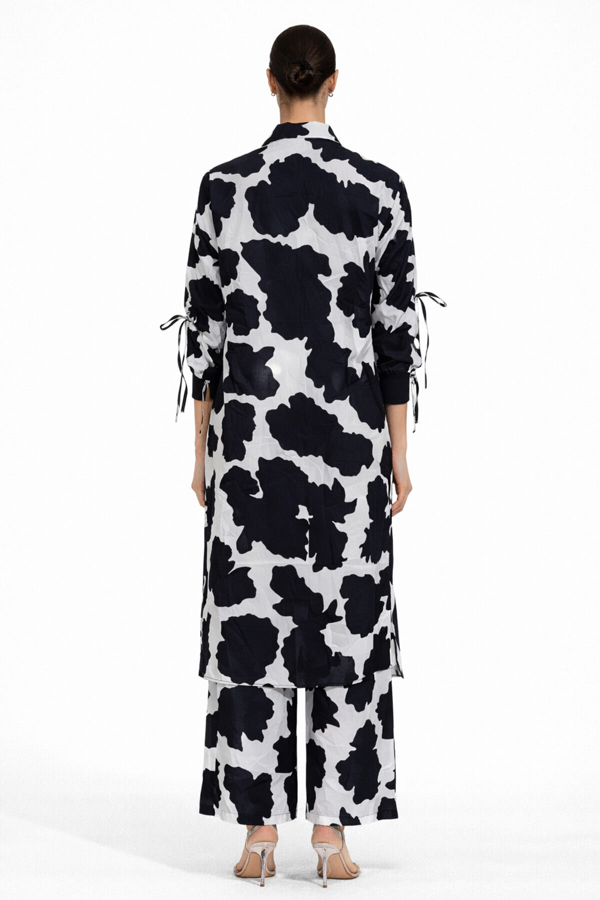 "Our staple set consisting of a printed long shirt & pants. Most of these images are AI generated, so there can be a slight difference. "
