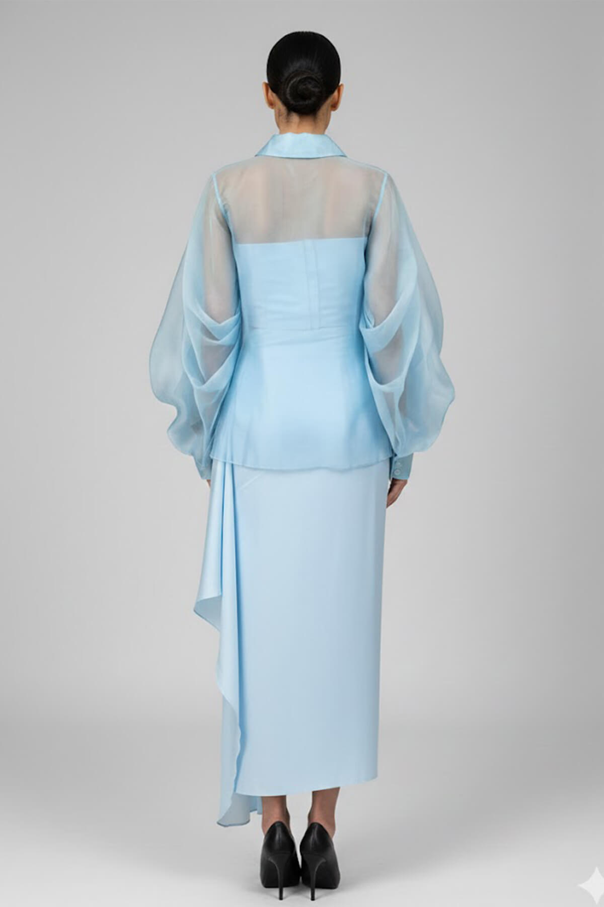 "A tube dress with a plain organza shirt on top. Most of these images are AI generated, so there can be a slight difference. "