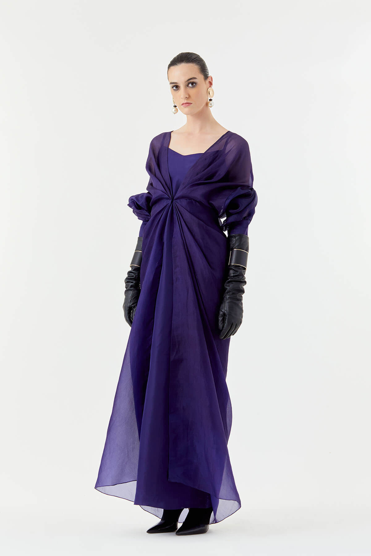A silk slip teamed with an organza jacket that sinches at the waist. Most of these images are AI generated, so there can be a slight difference.