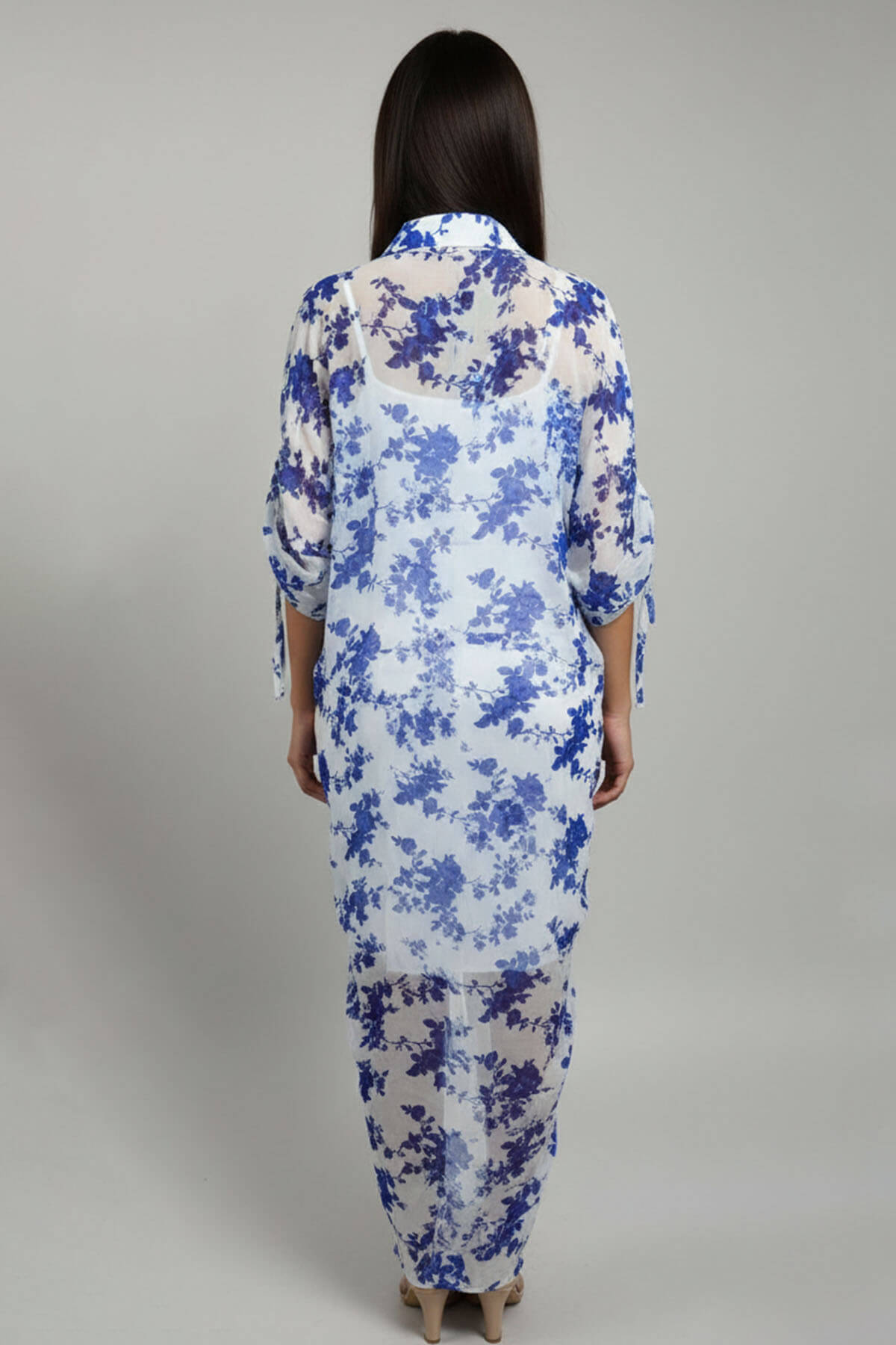 A non-structured kaftan style chiffon dress with slip inside. Most of these images are AI generated, so there can be a slight difference.