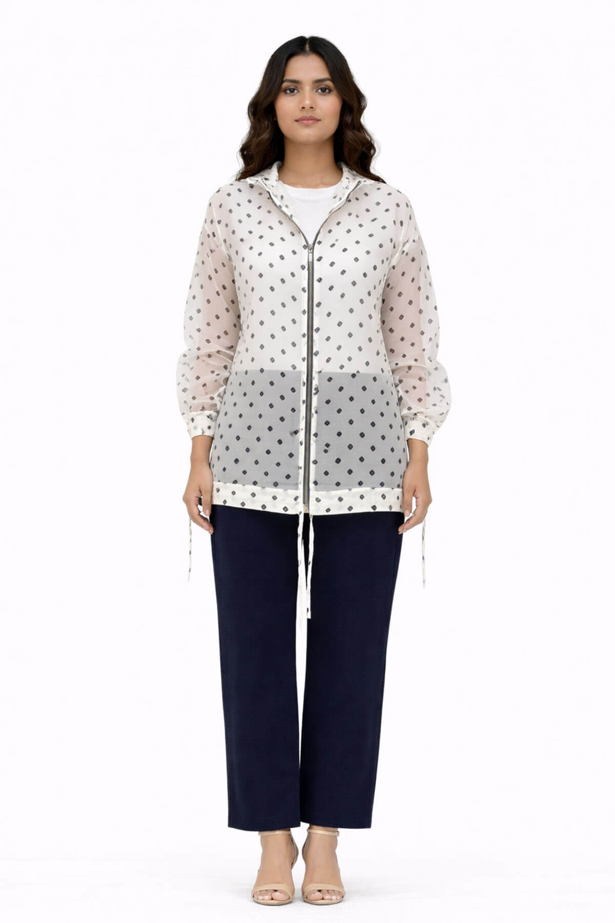 A printed bandhani organza jacket only. Most of these images are AI generated, so there can be a slight difference.