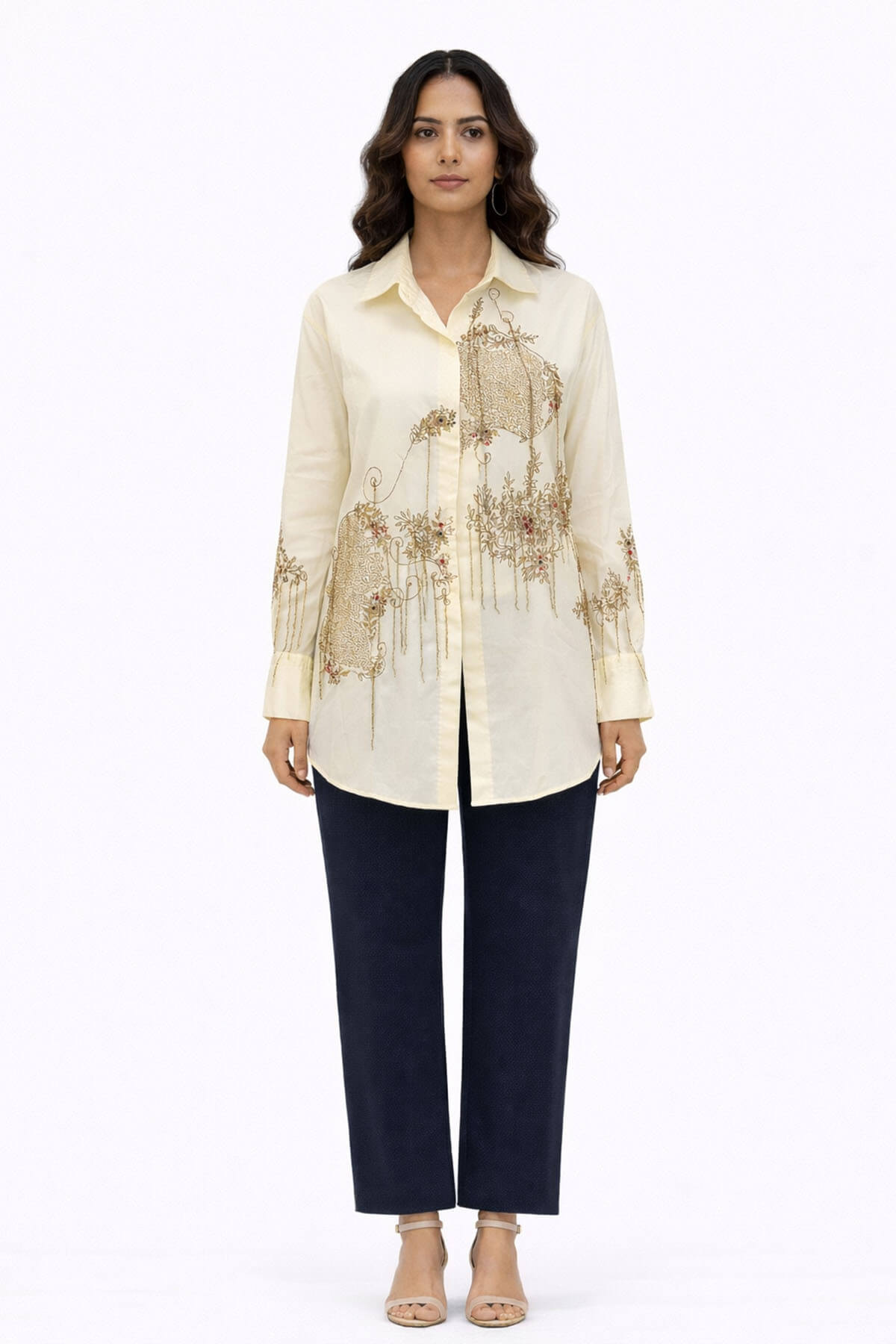 Embroidered cotton shirt. Most of these images are AI generated, so there can be a slight difference.