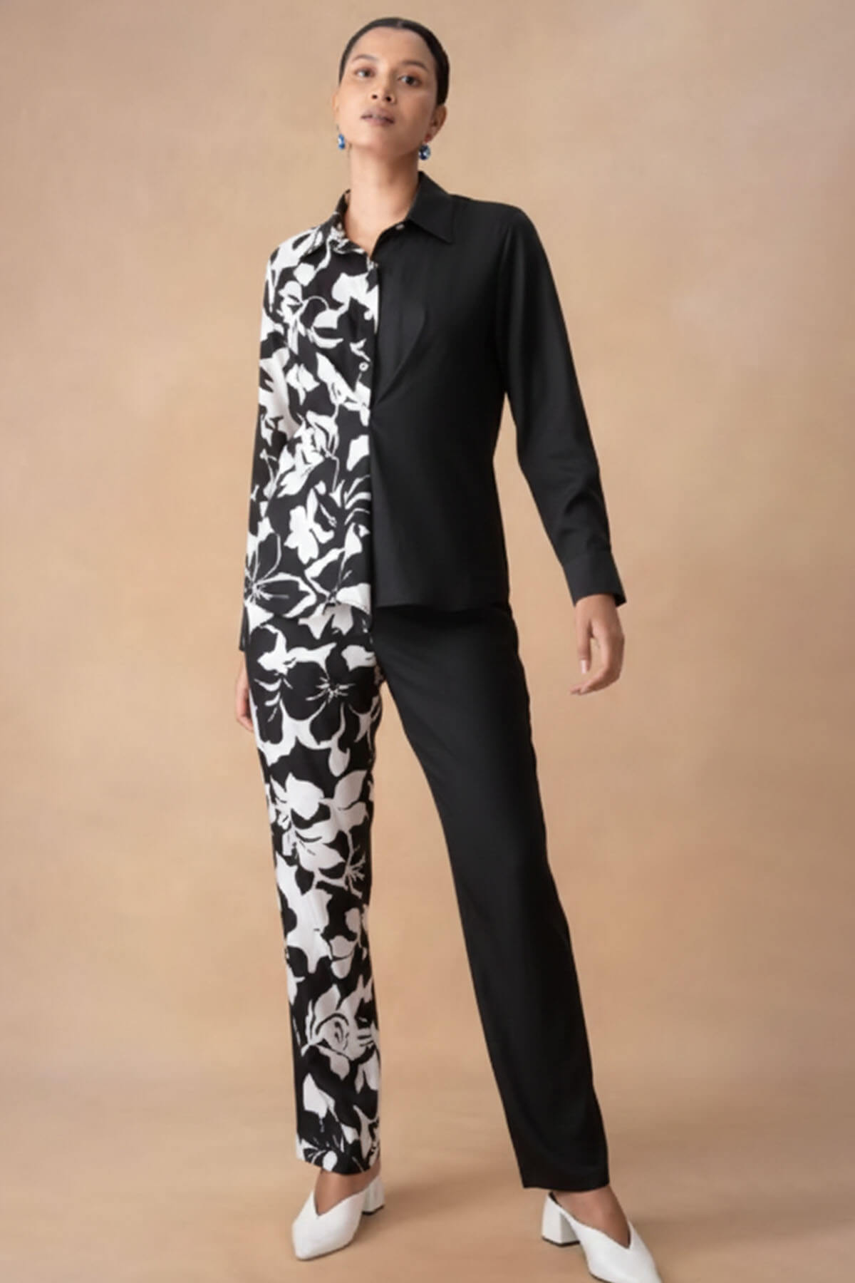 A co-ord set with a half and half beautiful floral print. Most of these images are AI generated, so there can be a slight difference.