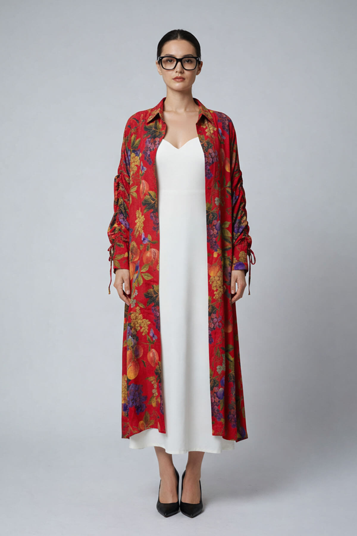 Printed long tunic paired with a long slip inside. Most of these images are AI generated, so there can be a slight difference.