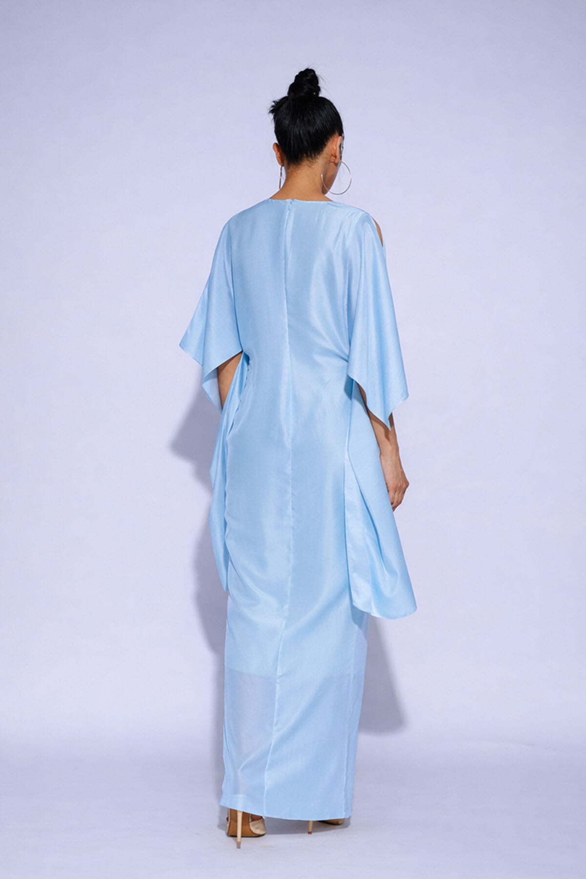 A beautiful drape dress with gathers in the front. Most of these images are AI generated, so there can be a slight difference.